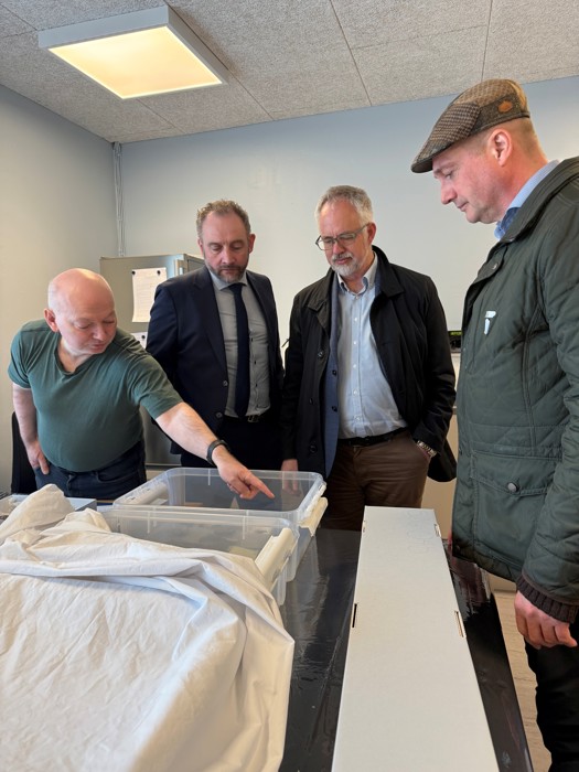 Landsstýrismaðurin vitjaði eisini goymsluna í Brekkutúni, har arbeitt verður við at flyta gripagoymsluna úr hølunum, tí blámusoppur er staðfestur har. Gripirnir verða reinsaðir og pakkaðir av nýggjum, áðrenn teir verða fluttir. Hetta er drúgt arbeiði, tí umleið 140.000 einstakir gripir eru á goymsluni.